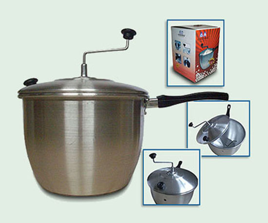 Embalada en caja (35 x 26 x 26 cm), con práctico instructivo para preparar unos ríquisimos pochoclos. Mango de bakelita